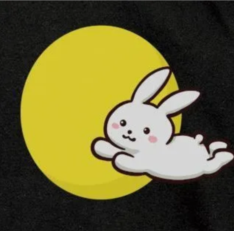 かわいいウサギとお月さまデザインTシャツ ブラック半袖 綿100% ユニセックス カジュアルトップス