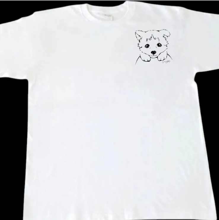 ・シンプルな白Tにワンちゃんのイラストがアクセント