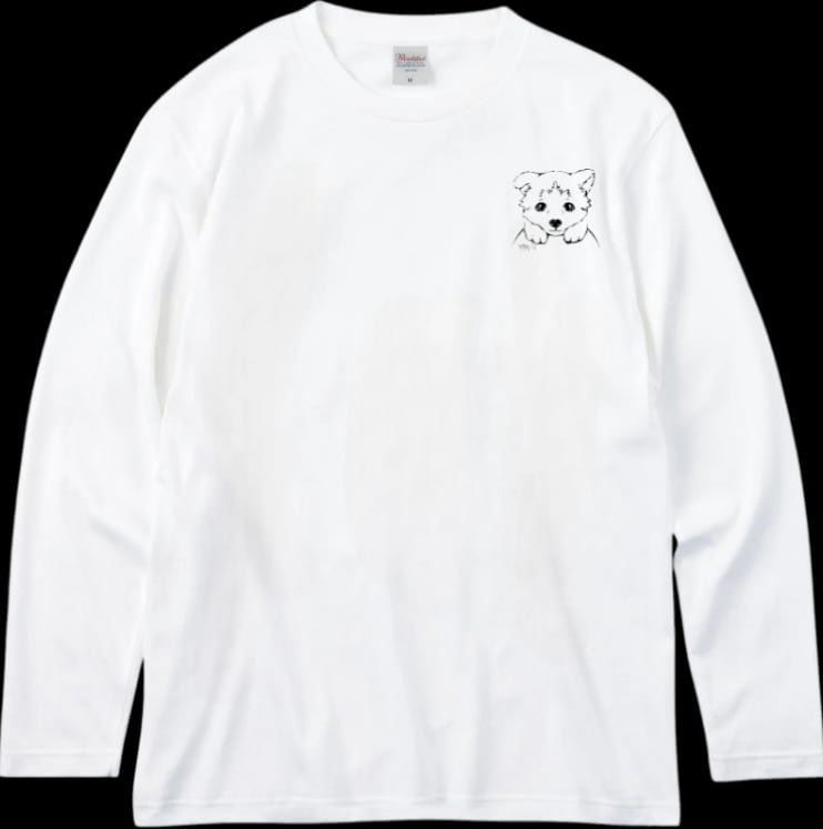 いぬワンポイントイラスト/犬/Tシャツ/白/長袖/プリント/シンプル/イラスト/おしゃれ/メンズ/レディース/ユニセックス/オリジナルデザイン/00102-CVL/Printstar 5.6オンス ヘビーウェイト長袖Tシャツ/ホワイト