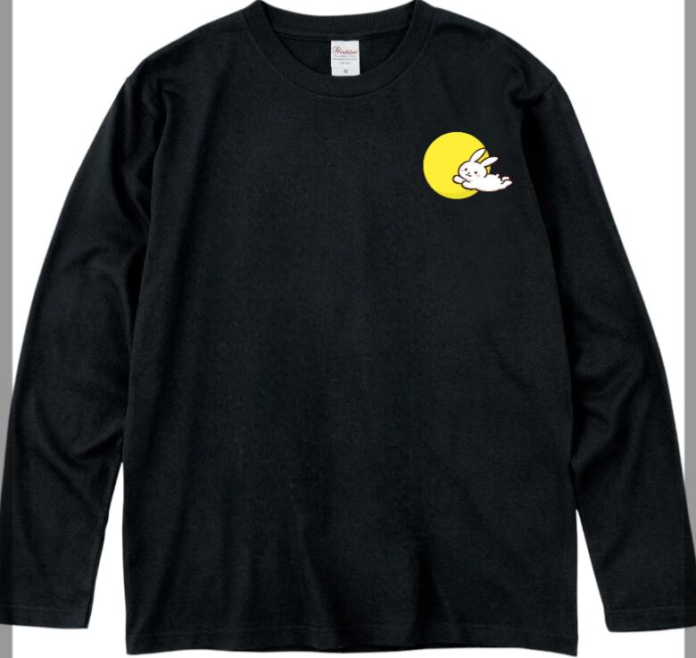 ウサギとお月さま デザイン 長袖Tシャツ ブラック プリントスター00102 5.6オンス ヘビーウェイト メンズ レディース ユニセックス おしゃれ かわいい カジュアル うさぎワンポイントイラスト/プリント/オリジナルデザイン/00102-CVL