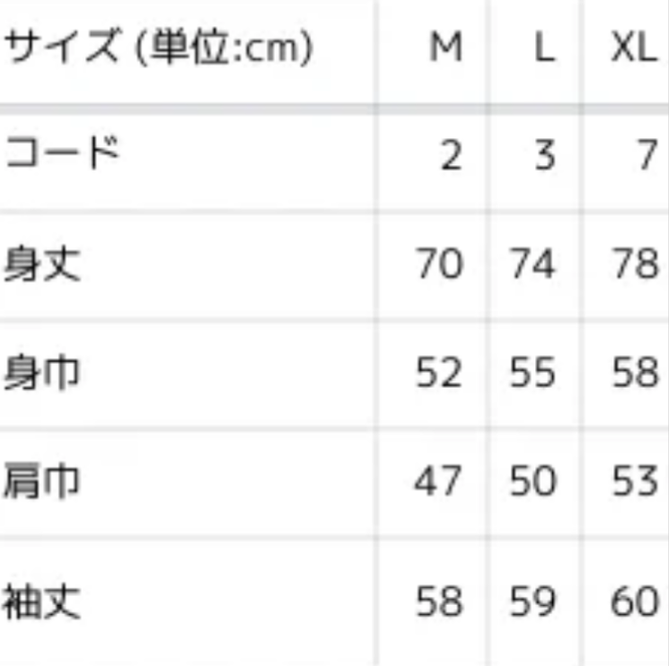 身丈:78:身巾:58:肩巾:53:袖丈:60