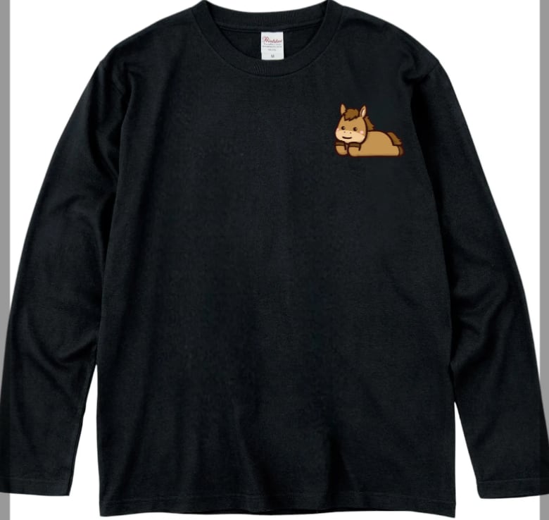 デザイン:落ち着いたカラーで描かれた馬イラストが、ブラックボディに映えるワンポイントアクセント。胸元の小さなアートがさりげなく個性を演出します。
