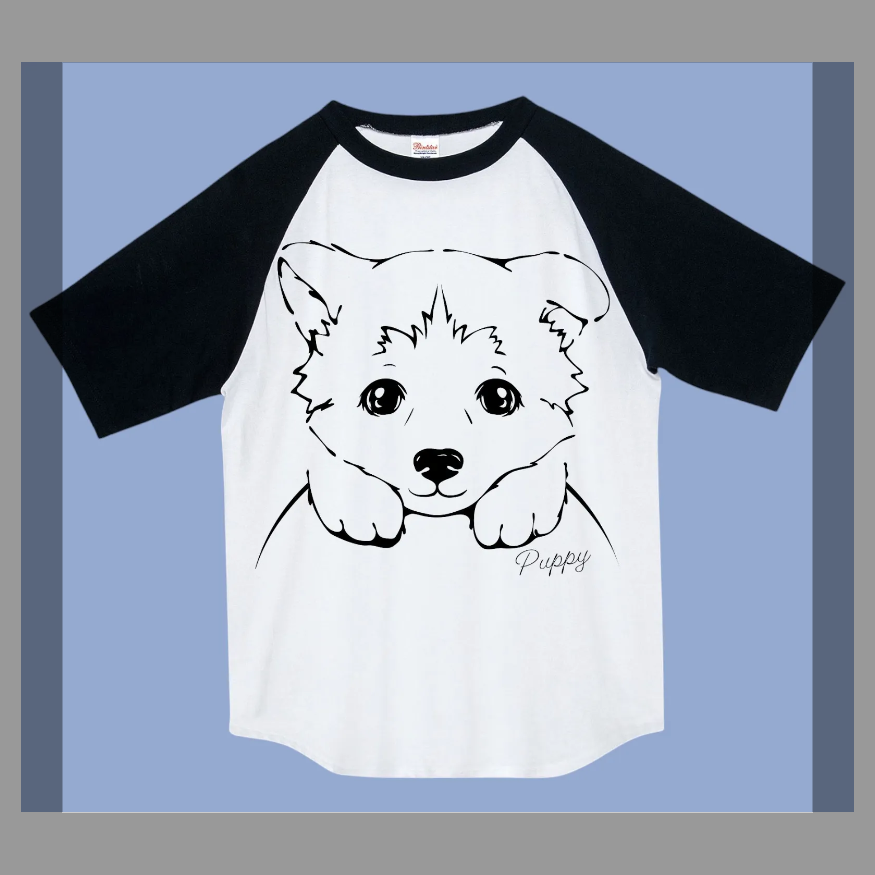 いぬイラスト/犬/Tシャツ/半袖/プリント/シンプル/イラスト/おしゃれ/メンズ/レディース/ユニセックス/オリジナルデザイン/00106-CRT/Printstar5.6ヘビーウェイトラグランTシャツ/ホワイト×ブラック