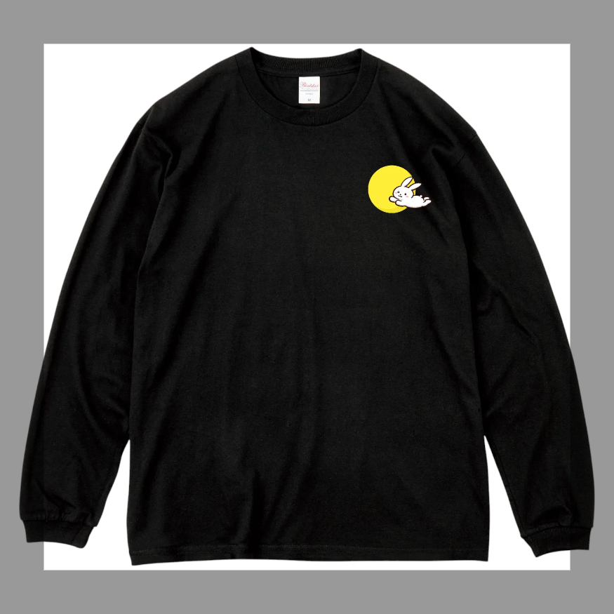 胸元にちょこんと描かれた“お月さまとウサギ”のワンポイントが可愛い、ゆったりシルエットのヘビーウェイト長袖Tシャツ。