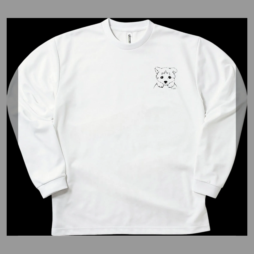 犬好き必見!爽やかワンポイントデザイン ドライロングスリーブTシャツ(ホワイト)