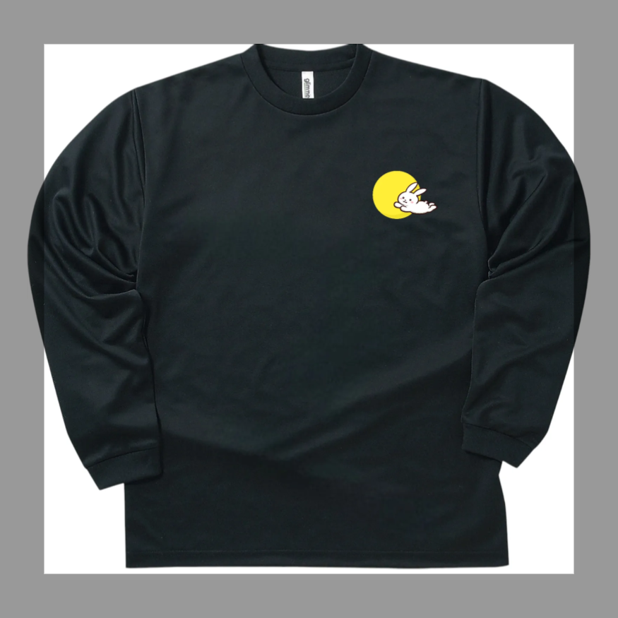 【グリマー00304 ドライ長袖Tシャツ|ウサギとお月さま/ブラック】