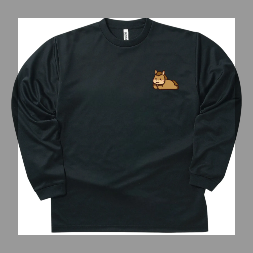 うまワンポイントイラスト/馬/Tシャツ/長袖/かわいい/イラスト/おしゃれ/メンズ/レディース/オリジナルデザイン/00304-ALT/glimmer 4.4オンス ドライロングスリーブTシャツ/ブラック