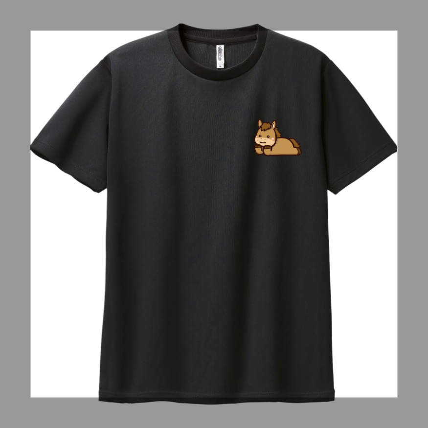 胸元に描かれたかわいい馬イラストが印象的な、**00300 グリマー 4.4オンス ドライTシャツ(ブラック)**です。