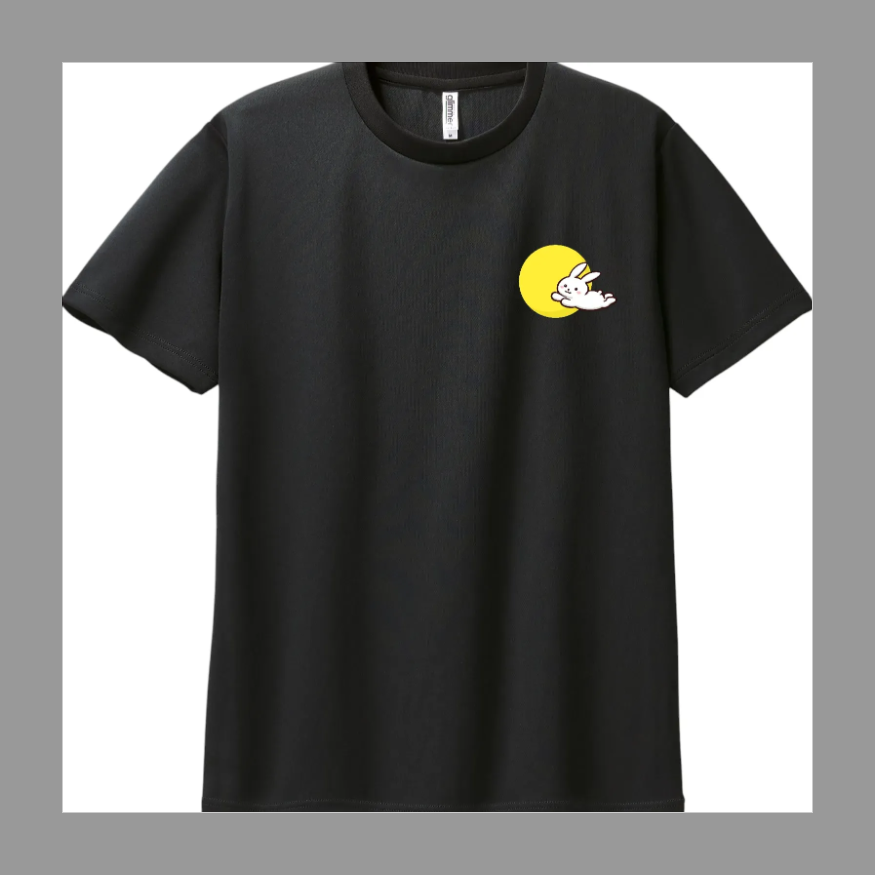 胸元にちょこんと描かれた“お月さまとウサギ”のワンポイントが可愛い、ブラックカラーのドライTシャツ。